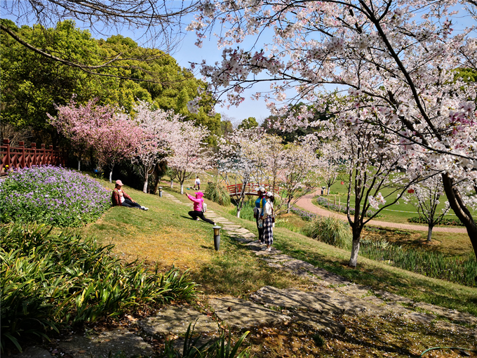 积极融入生态治污、海绵城市等新理念,科学运用立体绿化、生态浮岛、花境营造等新技术,在南湖、千亩湖、王家河、三大湖等公园水域建设了10万m2的生态浮岛,对水质进行净化、修复。在南湖公园防灾避险绿地、金鹗公园南门广场和桃花湖提质改造中融入海绵城市建设理念,采用透水铺装、下沉式绿地、生物滞流设施和生态草沟等形式将雨水引入到绿地中调蓄水体及地下集聚。