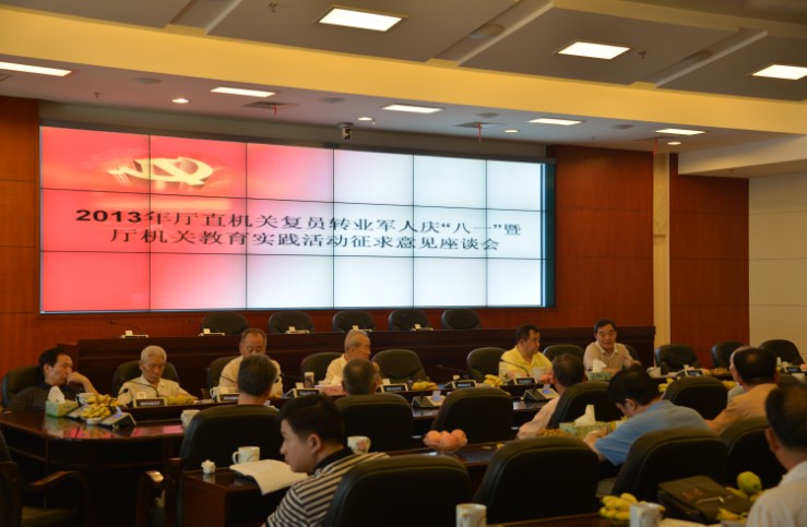 2013年8月1日上午,省住房和城乡建设厅召开厅直机关复员转业军人庆“八一”暨厅机关教育实践活动征求意见座谈会,庆祝中国人民解放军建军八十六周年。会议由副巡视员陈高立主持,厅党组副书记、副厅长袁湘江出席会议并讲话,厅直机关复员转业军人,机关党委、老干处负责人参加了座谈会。