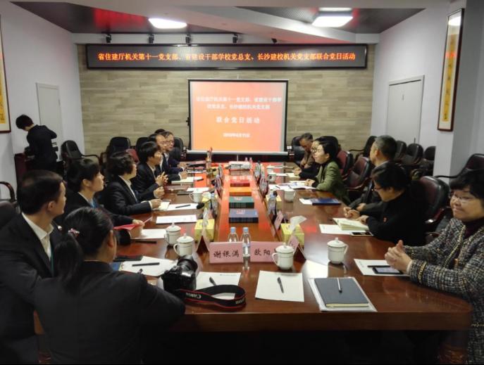4月11日省住建厅机关第十一党支部和我校党总支联合长沙建筑工程学校机关党支部开展4月主题党日活动。活动主要由两部分组成:调研考察高技能型建筑技能人才培养、推进建筑工程高质量发展的先进经验和学习余元君同志先进事迹、“扫黑除恶”专项斗争工作有关知识。