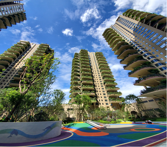 3.“创新”之居:创新居住模式,提升居住品质。城市森林花园建筑集合了中国传统四合院、北京胡同街巷、四川院落和空中园林、空中垂直绿化、空中智能停车和空中别墅等众多建筑特征于一身,优化出了一种新的“中国住房模式”。住在高层的住户亦能做到层层有街巷、户户有庭院,让人们在钢筋水泥的世界里拥有回归田园的机会。