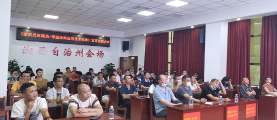 宣贯会上,厅科技处相关负责同志介绍了我省“保温涂料”标准相关情况,湖南大学刘宏成教授专题介绍我省反射隔热涂料理论分析与应用前景、湖南建工集团研究员级高级工程师彭琳娜及湖南建筑科学研究院高级工程师黄建光对《建筑反射保温隔热涂料应用技术标准》中的设计、施工、验收等进行分章节授课。