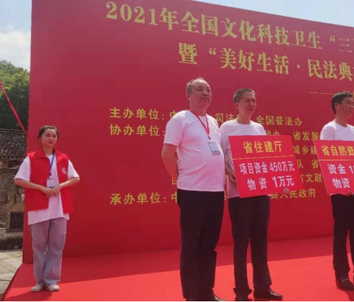 5月10日上午,2021年全国文化科技卫生“三下乡”(湖南省)集中示范活动暨“美好生活.民法典相伴”主题宣传启动仪式,在汝城县沙洲村举行。