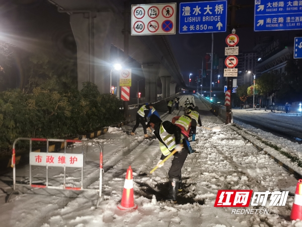 常德市3600多名一线环卫工人全员上岗开展清雪作业,全力保障道路畅通,其中有1400名环卫工人重点对桥梁、商圈、安全岛、天桥、公交站点周边路面进行除雪除冰,对公厕、中转站进出口做好防滑措施,全力保障主要路段路面群众和车辆通行正常。