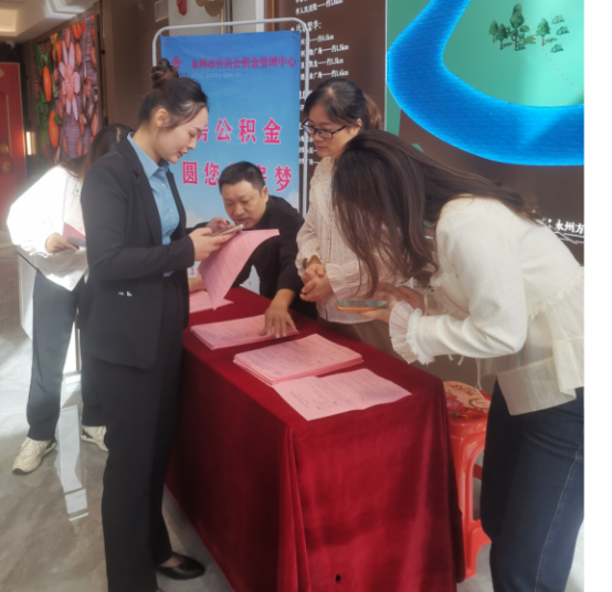 在楼盘活动现场,祁阳管理部设置了宣传区,布置了宣传展架,详细了解了楼盘的销售情况、施工进度等,结合客户对住房公积金贷款的需求、楼盘的特点等进行了深入探讨,并对楼盘销售人员提出的问题进行现场解答。同时,向来到售楼处现场的广大群众讲解住房公积金贷款、提取等相关业务办理知识,将住房公积金宣传单送到群众手里。