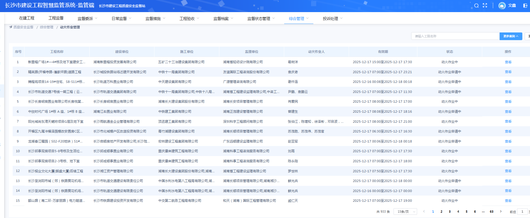 长沙市住建局创新建筑保温材料溯源管理,要求施工单位在“长沙市智慧住建监管系统”填报保温材料全流程信息(包含供应企业、技术指标、进场、取样、检测、验收等环节),实现数据“可追溯、可验证、可追责”。在“长沙市智慧住建监管系统”设置动火作业线上审批模块,实时监测作业审批、实施及整改全流程,推动动火作业从“线下审批”向“线上智控”转型。同时强化督导检查,11月共检查在建项目235个,发现并督促整改消防隐患66处,指导302个项目完成年度消防应急演练及培训,并在香港“11・26”火灾事故发生后一周内完成脚手架材料专项排查,全面防范建筑施工火灾风险。