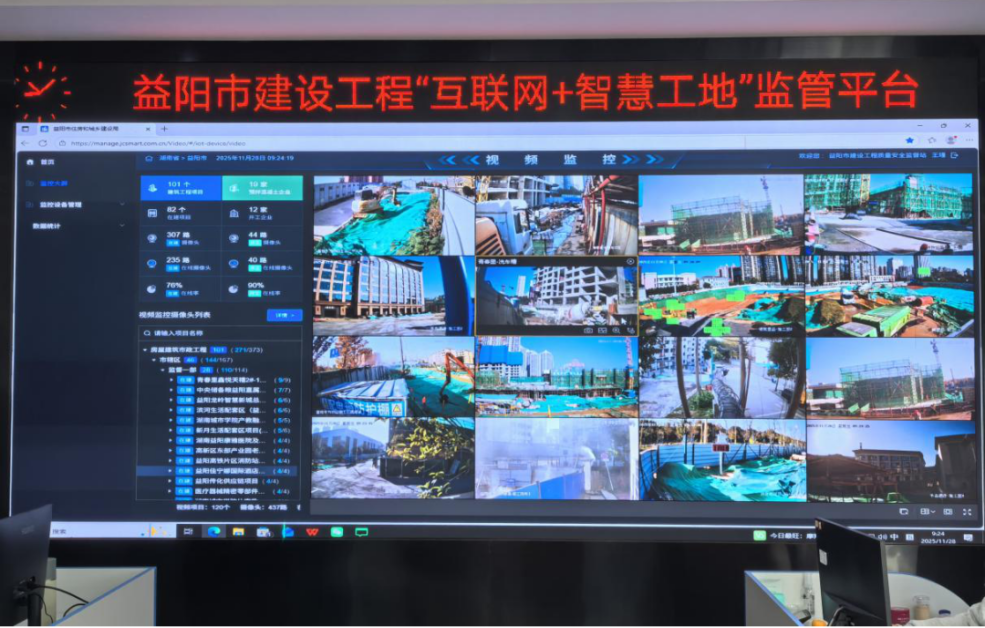 益阳市住建局积极推进“互联网+智慧工地”监管平台建设,整合建筑工人实名制、视频监控、扬尘噪声监测等八大业务系统,实现对在建工地的全流程、全要素智能化监管,推动工地管理从“人防”向“技防”转型。目前全市147个在建项目和37家预拌混凝土企业中,实名制平台接入率达83.67%,视频监控接入率达82.31%,扬尘噪声监测接入率达85.03%,有效破解传统工地管理中的安全监管盲区、资源浪费、环境污染和协同效率低等难题。