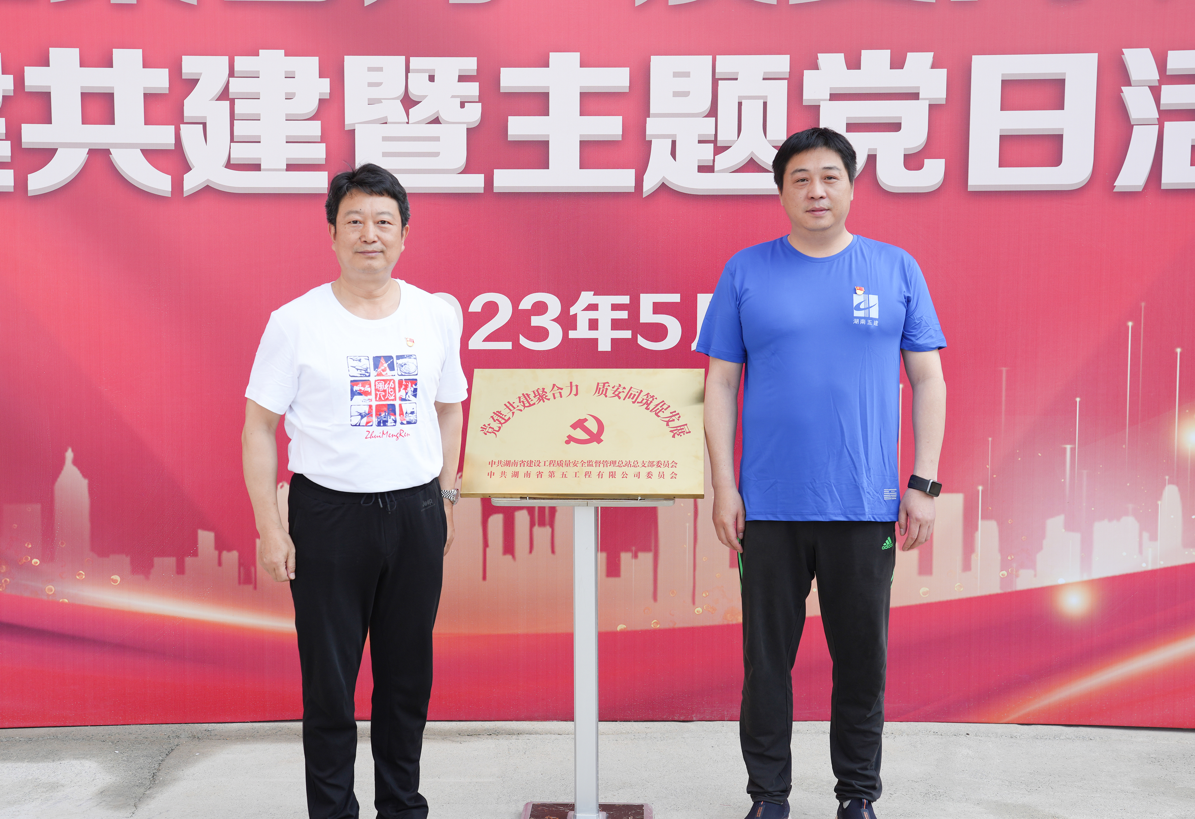 在深入开展学习贯彻习近平新时代中国特色社会主义思想主题教育之际,为推动主题教育走深走实、见行见效,实现优势互补共享,促进党建与业务工作深度融合。5月18日,湖南省建设工程质量安全监督管理总站与湖南建投五建集团有限公司联合在项目上开展“党建共建聚合力,质安同筑促发展”党建共建暨主题党日活动。总站党总支书记、站长王向东,五建党委书记、董事长龙兴出席,总站和五建在家领导及部分党员职工代表近100人参加活动。