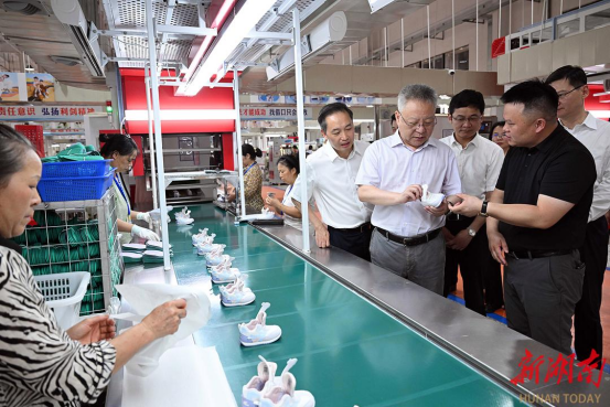 (7月1日,沈晓明在湖南荣耀鞋业有限公司调研。)