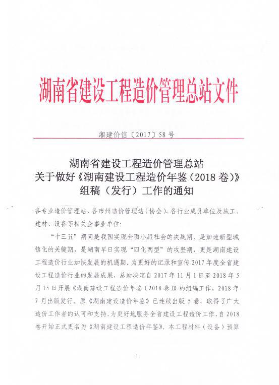 关于做好《湖南建设工程造价年鉴(2018卷)》组稿(发行)工作的通知