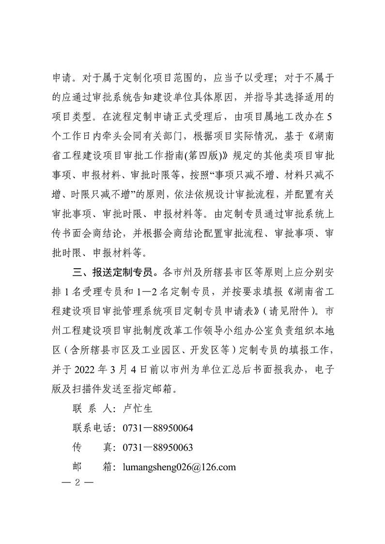关于填报湖南省工程建设项目审批管理系统项目定制专员的通知