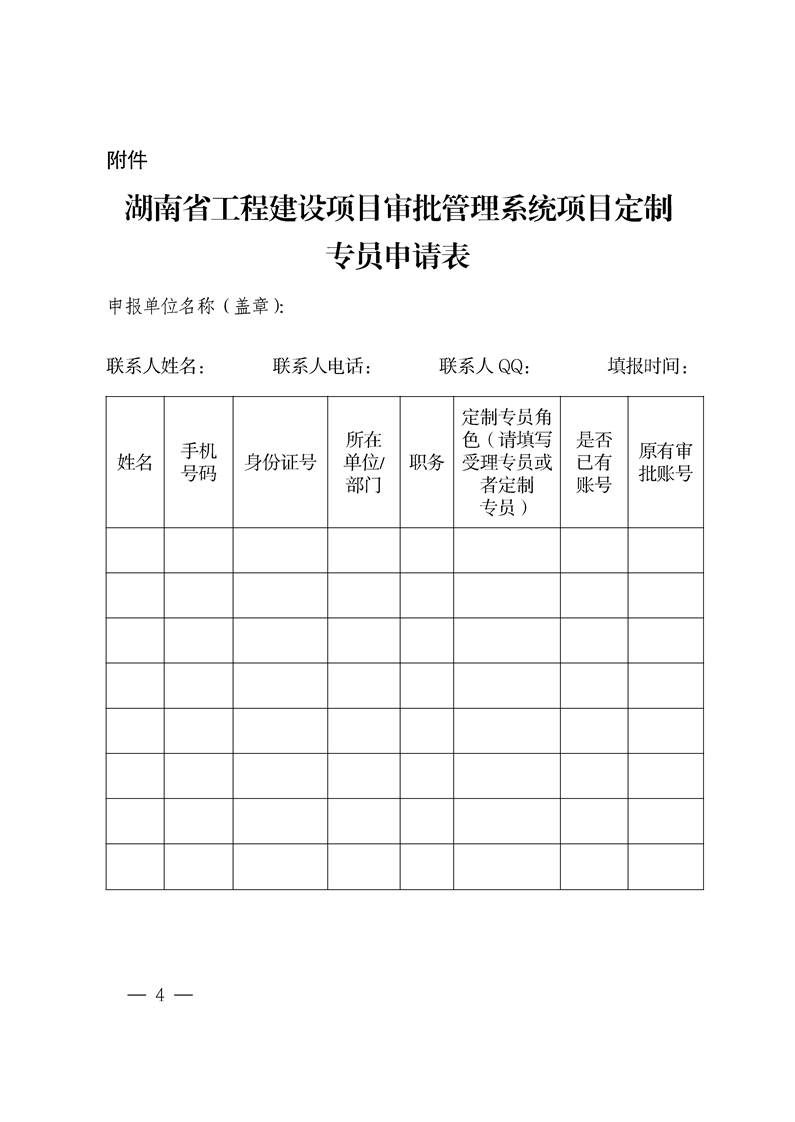 名称: 关于填报湖南省工程建设项目审批管理系统项目定制专员的通知