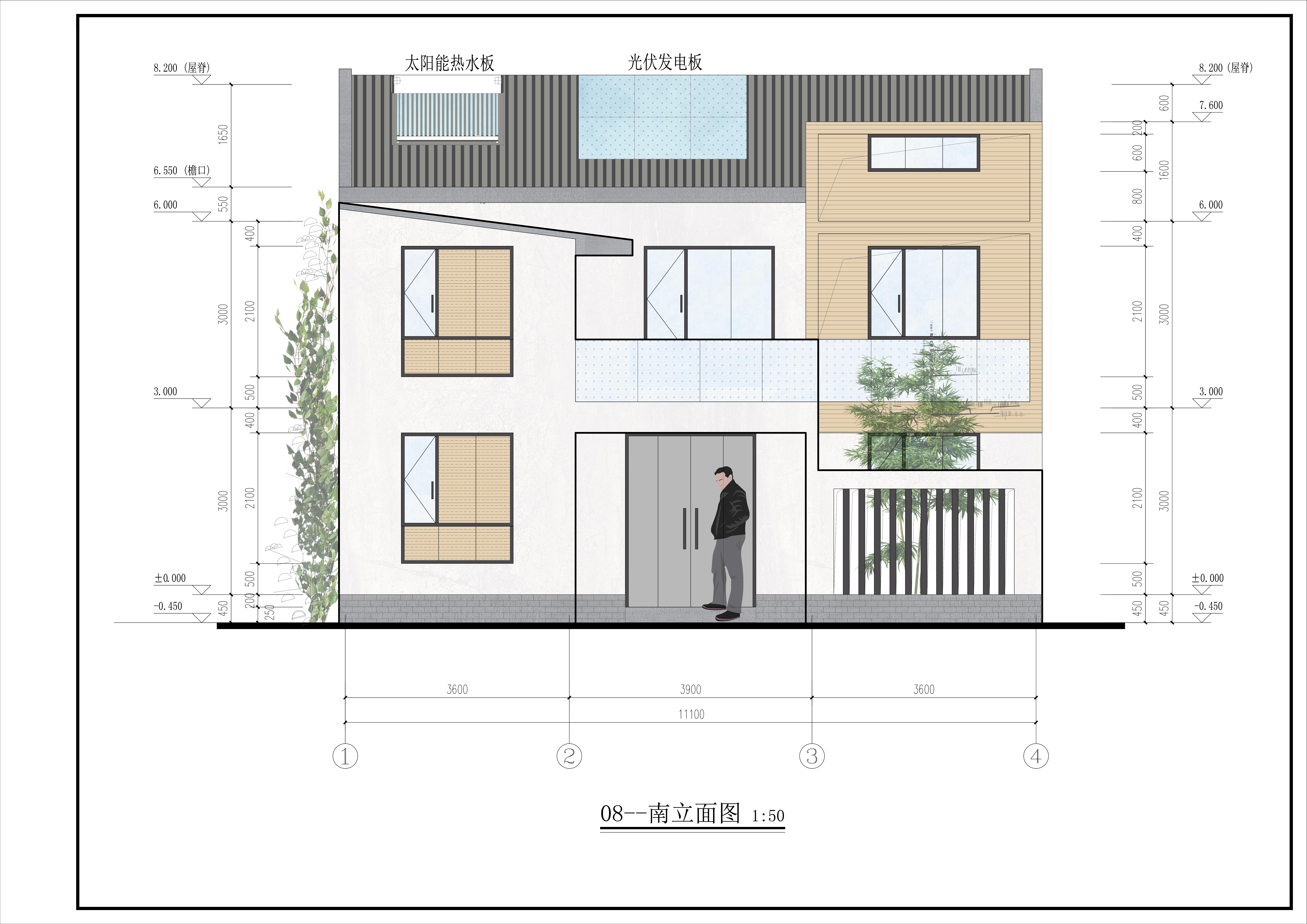 设计适配湖南夏热冬冷气候,采用南北通透布局与导风通道设计,配合保温隔热屋顶、架空防潮层及西墙绿化,实现全屋自然通风,四季舒适宜居,接近近零能耗标准。配套太阳能光伏、太阳能热水及雨水收集系统,优先选用本土可循环竹钢建材,全流程践行低碳环保。