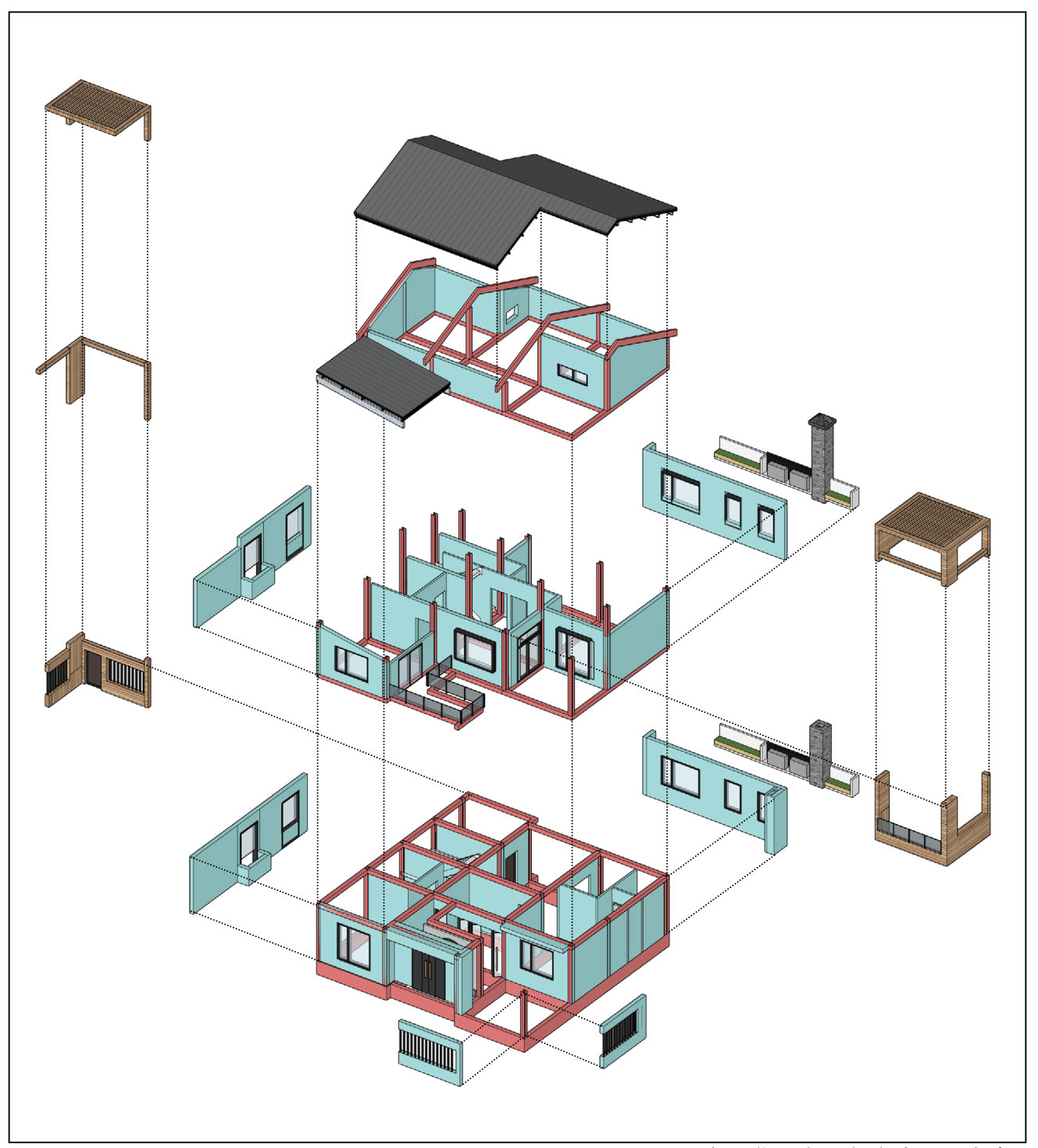 创新采用钢竹混合装配式建筑体系,装配率达80%,有效缩短工期、降低施工对乡村生态的影响。构件标准化生产、可灵活组合,支持联拼、围合等布局,既可满足单户居住,也适配村落集中建设,在严控成本的同时兼顾品质与实用。