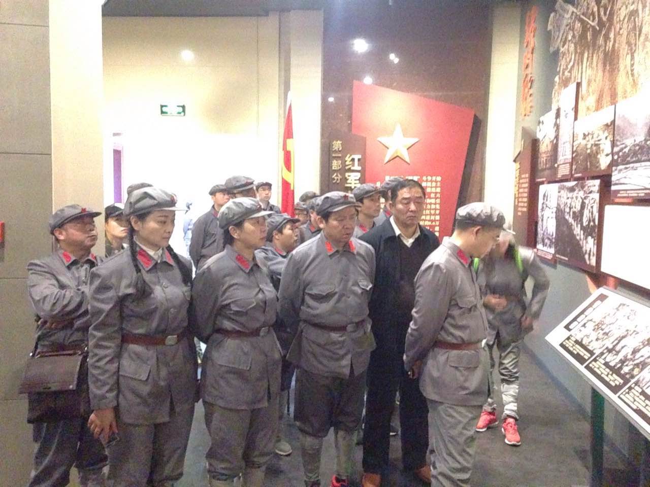 18日上午,在怀化至通道的汽车上,大家聚精会神观看了“通道转兵”历史教育片。之后,工会文娱委员带领大家学唱“情深谊长”等红军歌曲。18日下午,大家来到杉木桥乡小水村红军纪念碑,目睹了八位红军英勇跳崖壮烈牺牲的现场,向英勇的红军战士敬献了花篮,并认真聆听当地老百姓讲述当年红军先头部队奋勇作战开辟长征路线的英雄事迹。19日上午,全体同志来到通道转兵纪念馆。在纪念馆雕像广场,大家按照部队建制,进行了队列训练,然后列队进入纪念馆,静听讲解员介绍,细看每一幅珍贵的照片。然后,大家在旗手的指引下,沿着当年红军转兵贵州的方向,徒步行走了一段崎岖的山路,并在纪念地重温了入党誓词。中午,大家在沿途群众家里体验了红军餐、红薯饭、南瓜汤,再现了当前红军的苦与累。每个同志都切实体验和感悟红军长征精神,从而,更加坚定党员干部的爱国、爱党理想信念的自觉,更加坚定了永远跟党走的自觉,更加坚定了珍惜今天幸福生活的自觉。