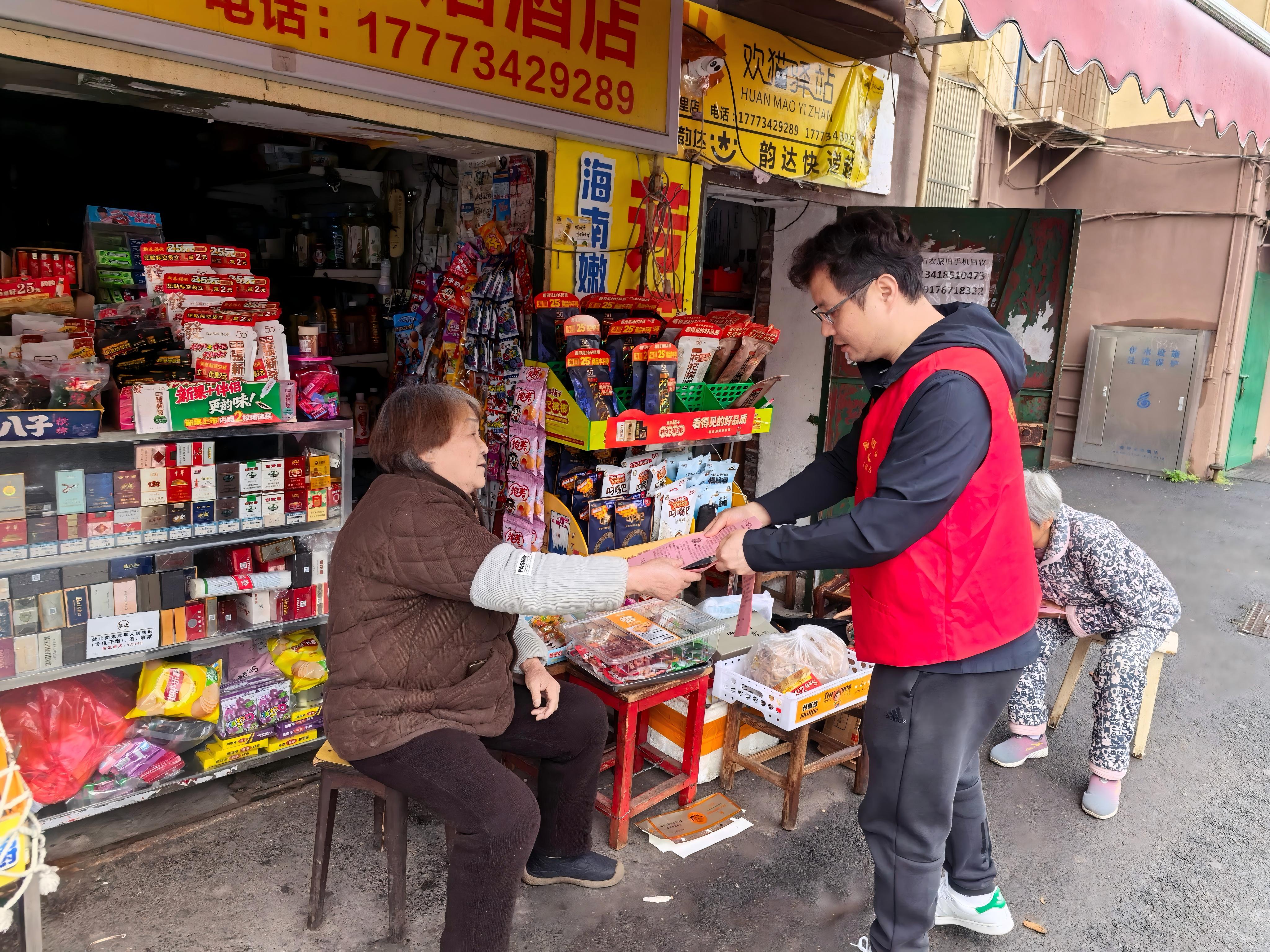 活动现场,党员志愿者们分工协作、有序行动。一组志愿者负责向社区居民、沿街商户耐心发放安全生产、应急避险、居家安全、建筑安全等相关宣传传单,让安全理念深入人心,切实提升社区群众的安全防范意识和应急处置能力。