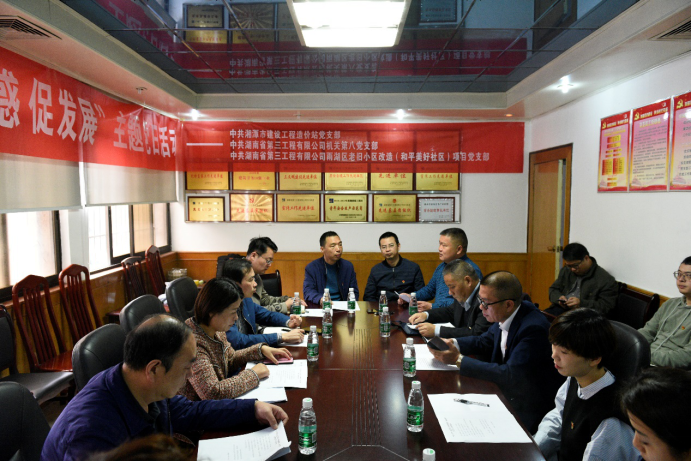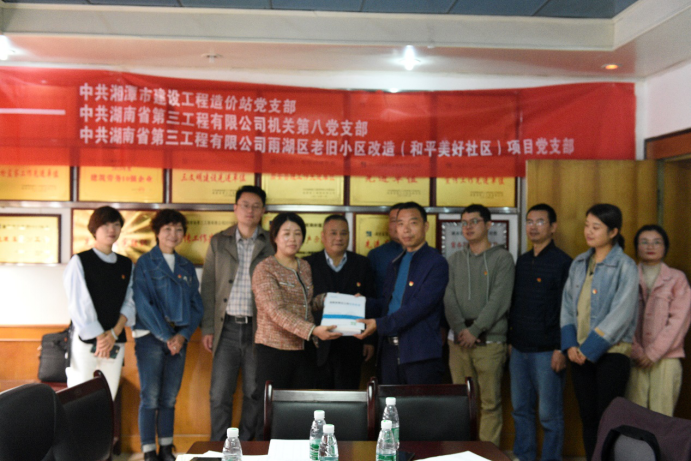 10月30日上午,湘潭市造价站党支部联合湖南建工集团三公司机关第八党支部、雨湖区老旧小区改造和平美好社区项目党支部开展“联点共建进项目、答疑解惑促发展”的主题党日活动,三个支部共23名党员参加活动。