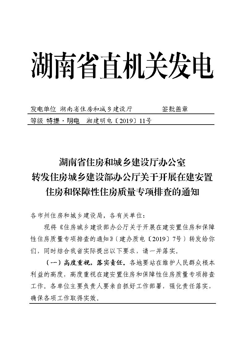 名称: 关于开展在建安置住房和保障性住房质量专项排查的通知