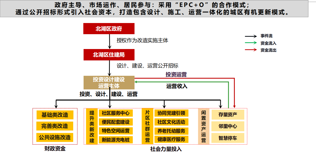 北湖区试点推行 “EPC+O”(设计-采购-施工+运营)一体化模式,通过兼顾“改前+改后”、推行“物管+城管”、引导“企业+居民”、深化“党建+邻里”等举措,结合本地实际,探索形成了城镇老旧小区改造⠼font face="Times New Roman" >“北湖模式”。⠼/span>